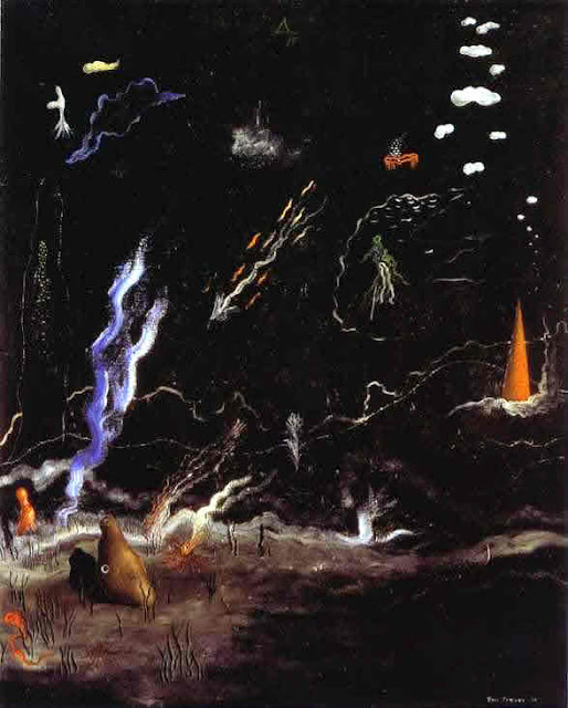 Yves Tanguy (1900 - 1955), pintor francês, nascido em Paris, adotou a nacionalidade americana em 1948. Durante o serviço militar conheceu Jacques Prévert. Autodidata, no regresso a Paris, em 1922, depois de ver pinturas de Chirico, começou a pintar. Conheceu André Breton em 1925 e participou em ações organizadas pelos Surrealistas. Apresentou a sua primeira exposição individual em 1927, na Galerie Surréaliste. Em 1928, expõe - juntamente com Ernst, Chirico, Masson e Miró - na "Exposition Surréaliste".
