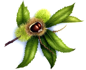 Ramos de castanheiro com frutos